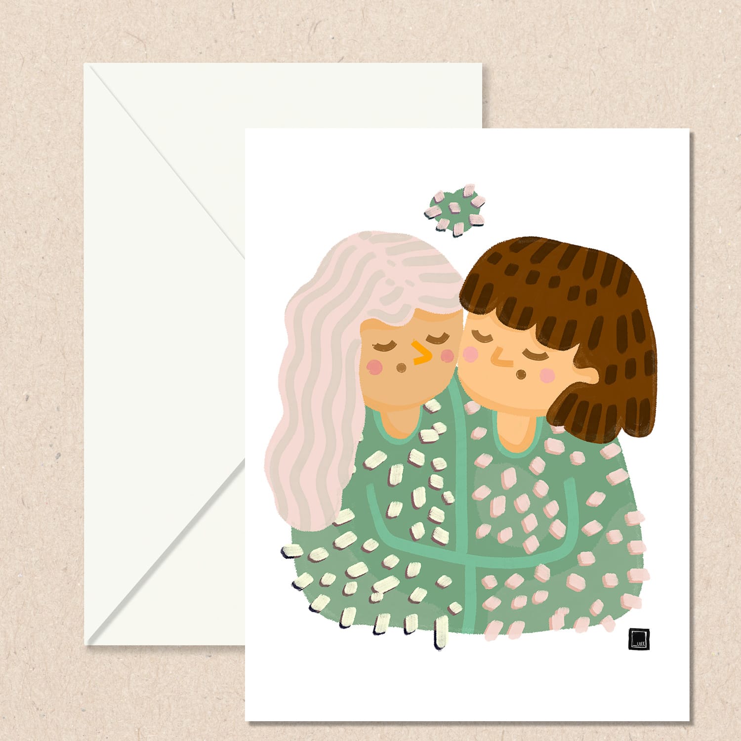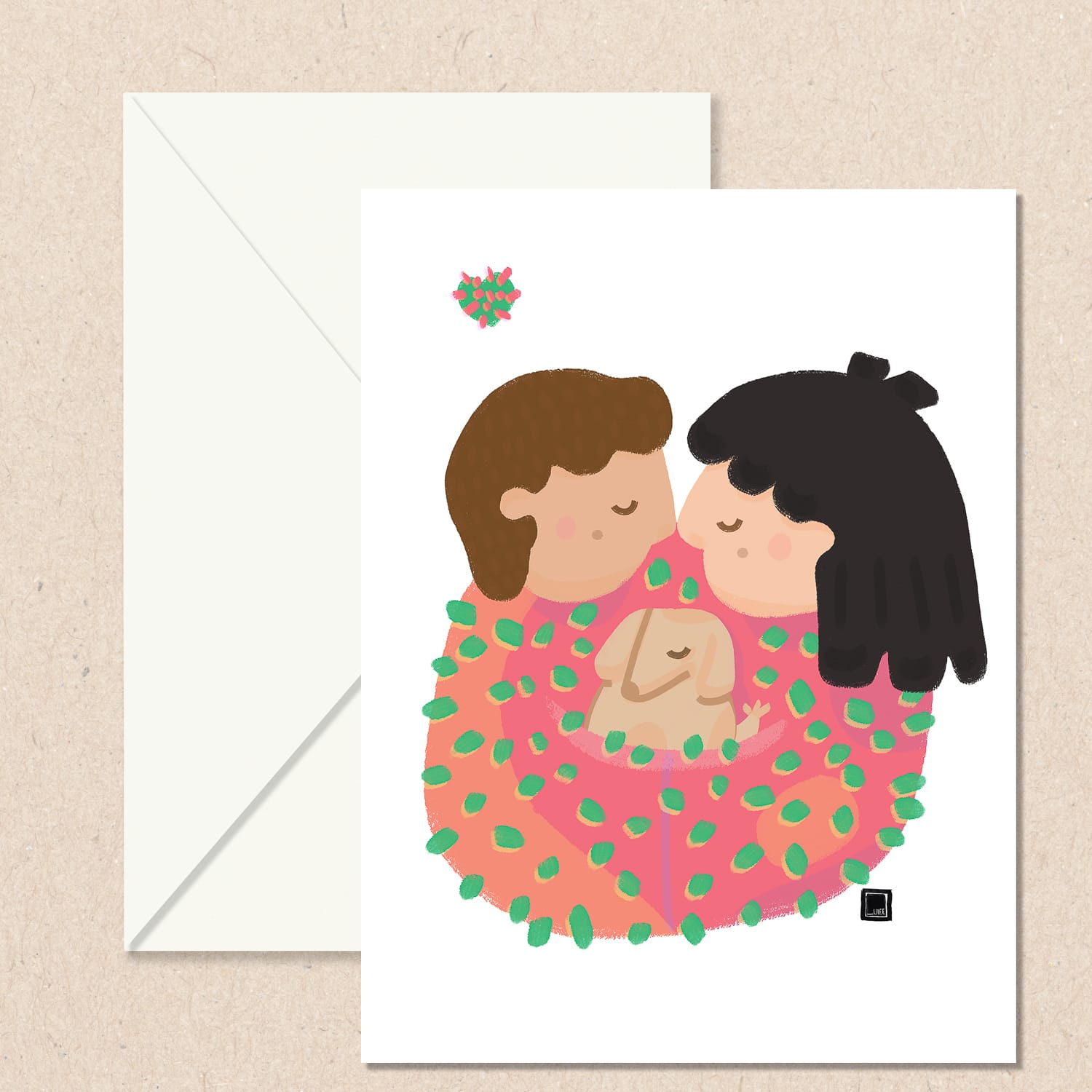 Εναλλακτικές κάρτες ευχών σε μέγεθος 12x16 εκ., μονής όψης, τυπωμένες σε χαρτί υψηλής ποιότητας fine art print. Κάθε κάρτα συνοδεύεται από φάκελο μεγέθους 12,5x17 εκ., που κλείνει με αυτοκόλλητο στο πίσω μέρος.